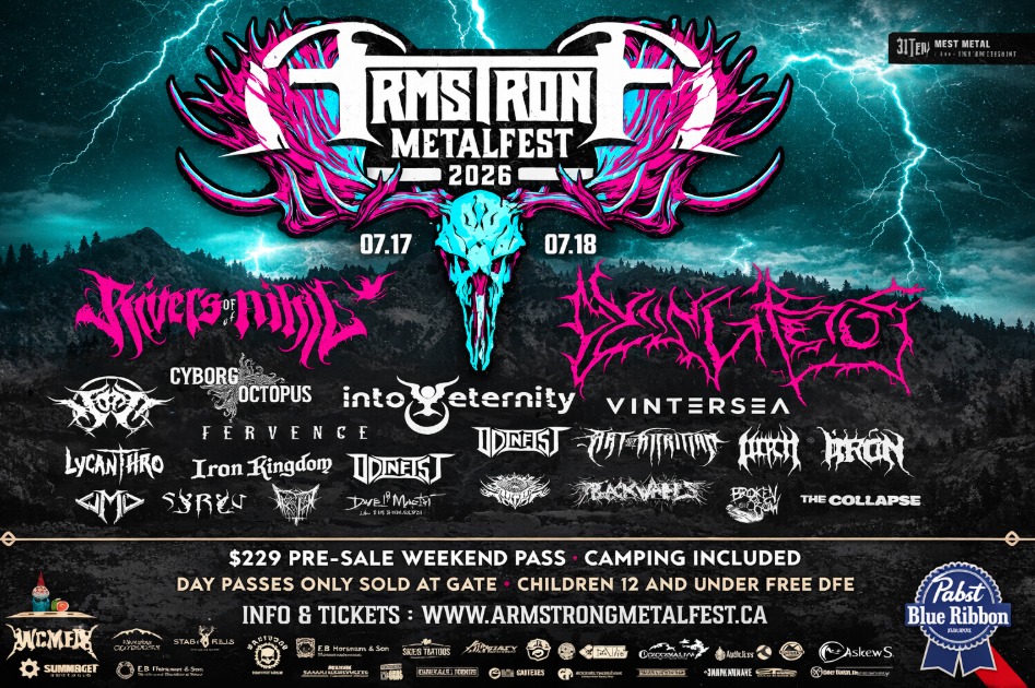 “ARMSTRONG METALFEST is proud to announce their most devastating lineup to date for 2026 with co-headliners RIVERS OF NIHIL and DYING FETUS, along with CYBORG OCTOPUS, INTO ETERNITY, FERVENCE, VINTERSEA, LYCANTHRO, IRON KINGDOM, ODINFIST, ART OF ATTRITION and many more!”