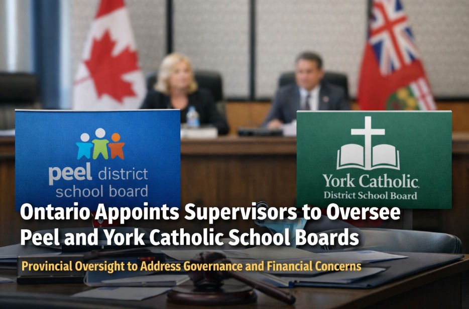 TORONTO — Ontario’s Ministry of Education has appointed supervisors to oversee two major school boards in the Greater Toronto Area, citing concerns over governance conflicts and long-term financial sustainability that could disrupt student learning.